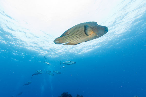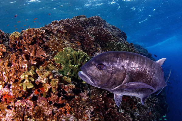 季節に応じて、オニイトマキエイ、ナンヨウマンタ、ザトウクジラ、ギンガメアジ、ハンマーヘッドシャーク、カマストガリザメなどの大物も見れます。
